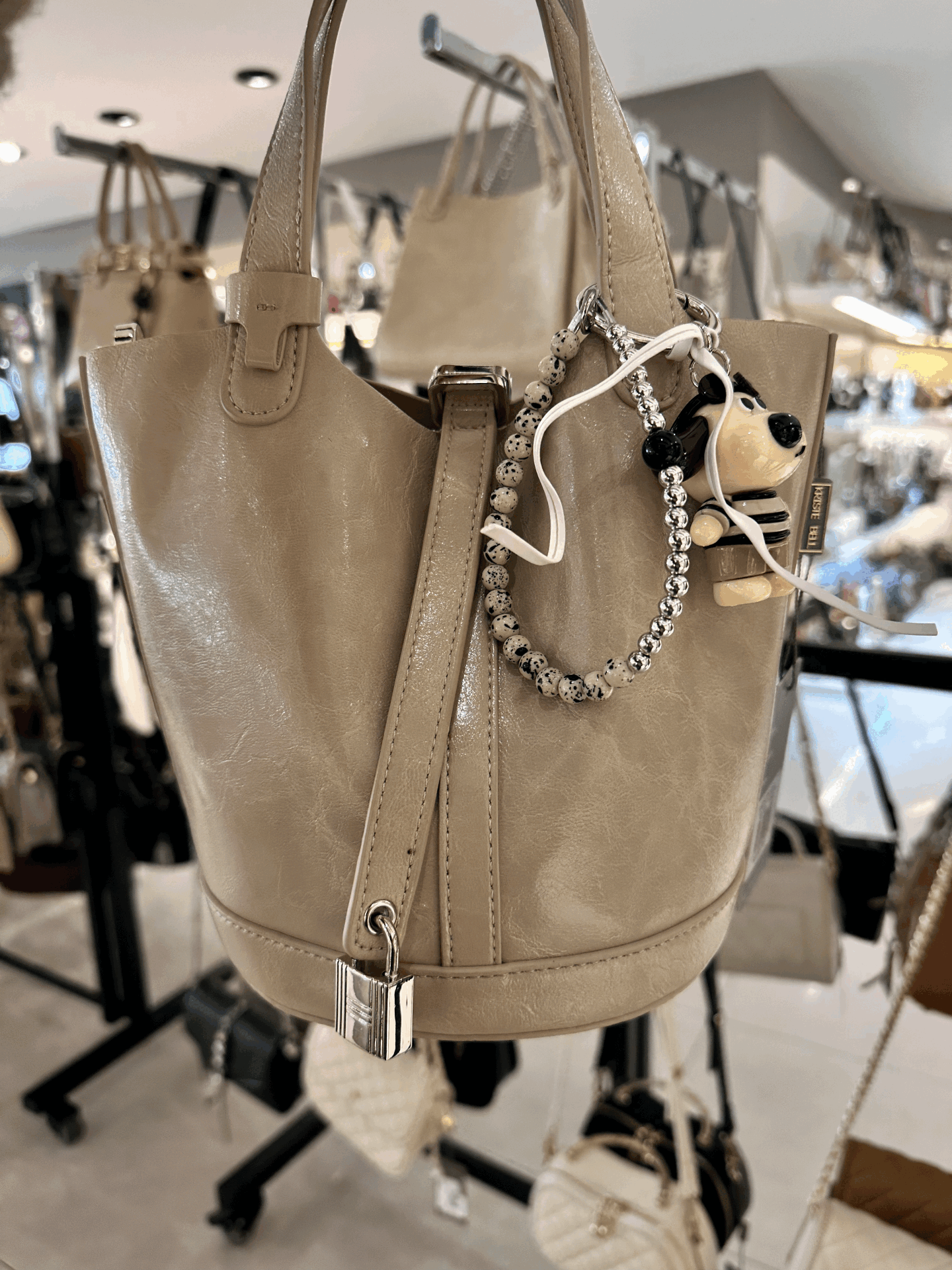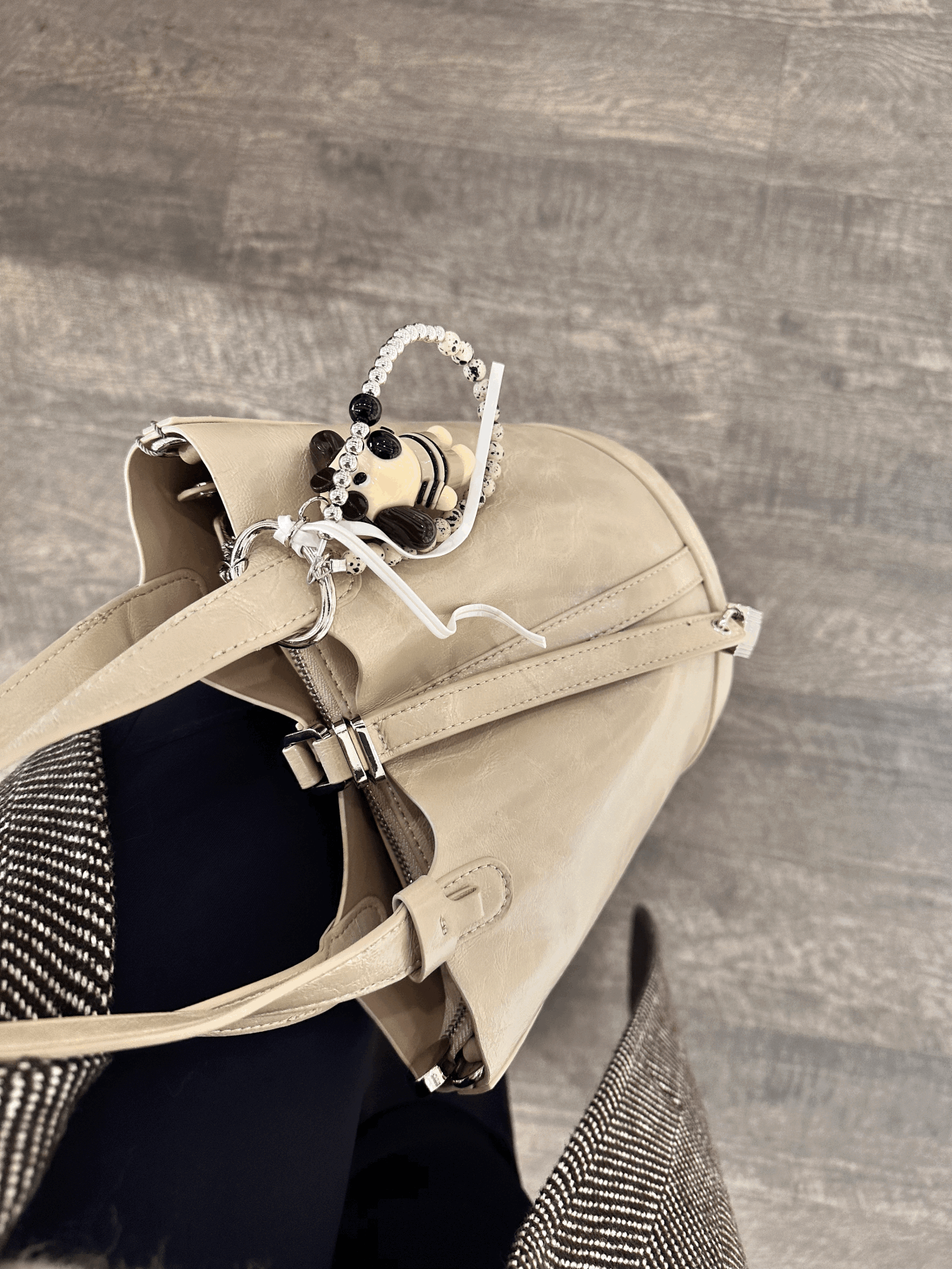 Bej Charmlı Heybe Kadın Çantası