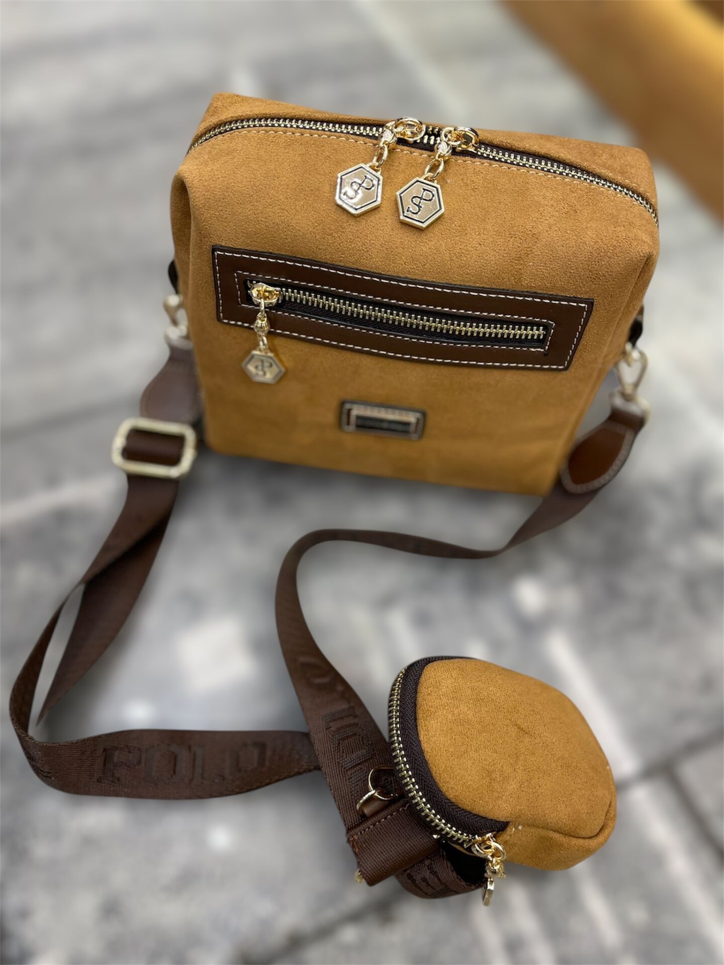 Kahverengi Süet Kadın Çantası Hardal Sarı