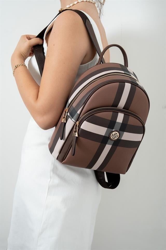 Kahverengi Ekoseli Kadın Sırt Çantası