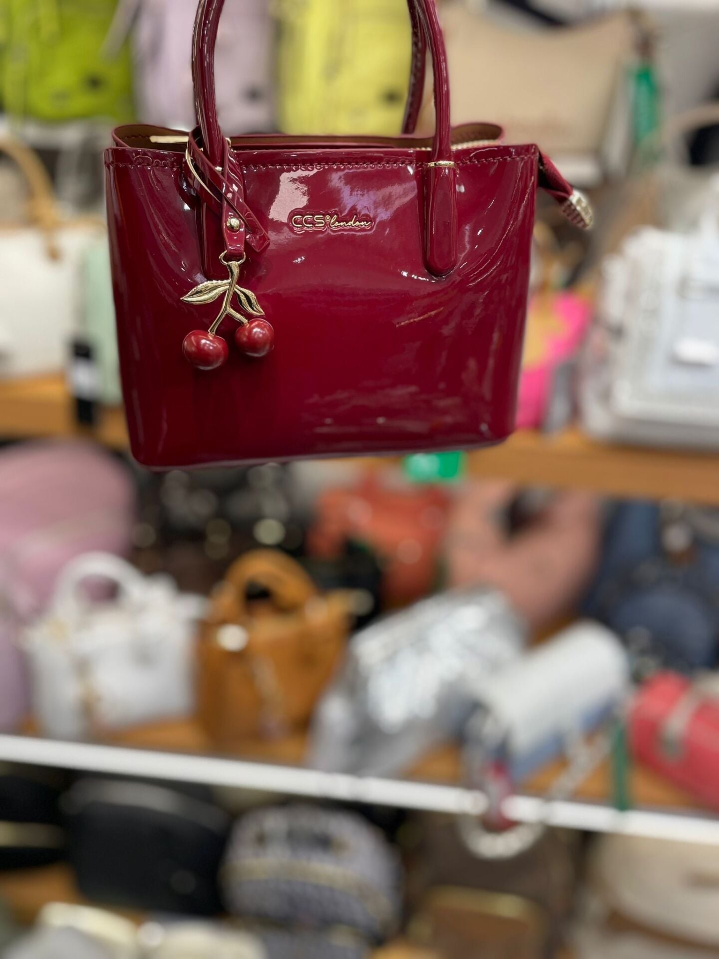Rugan deriden üretilen Kırmızı Kirazlı kadın çantası kiraz aksesuarı ile 2026 çanta modasında göz dolduruyor.