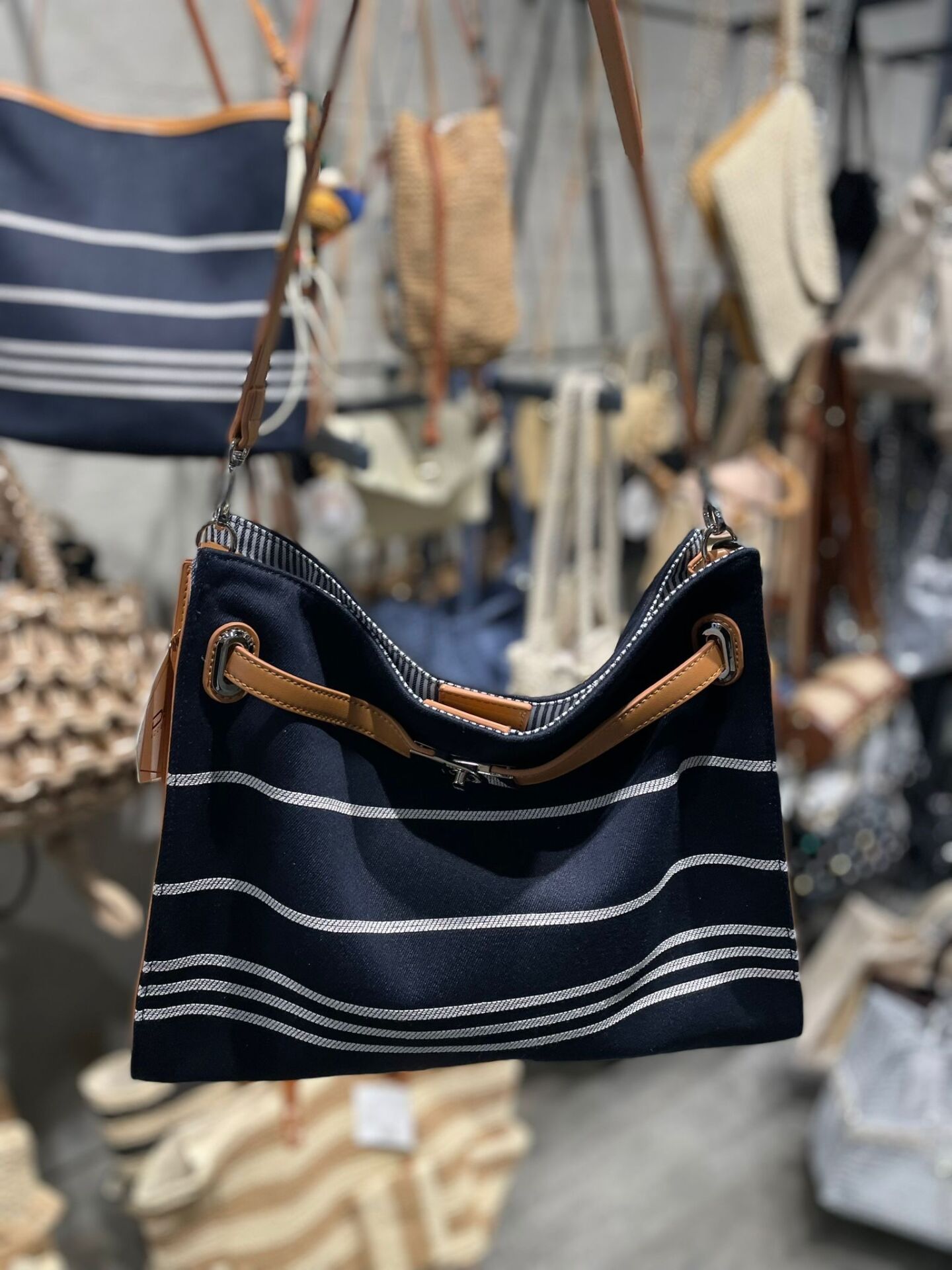 Lacivert Çizgili Tokalı Kadın Çantası