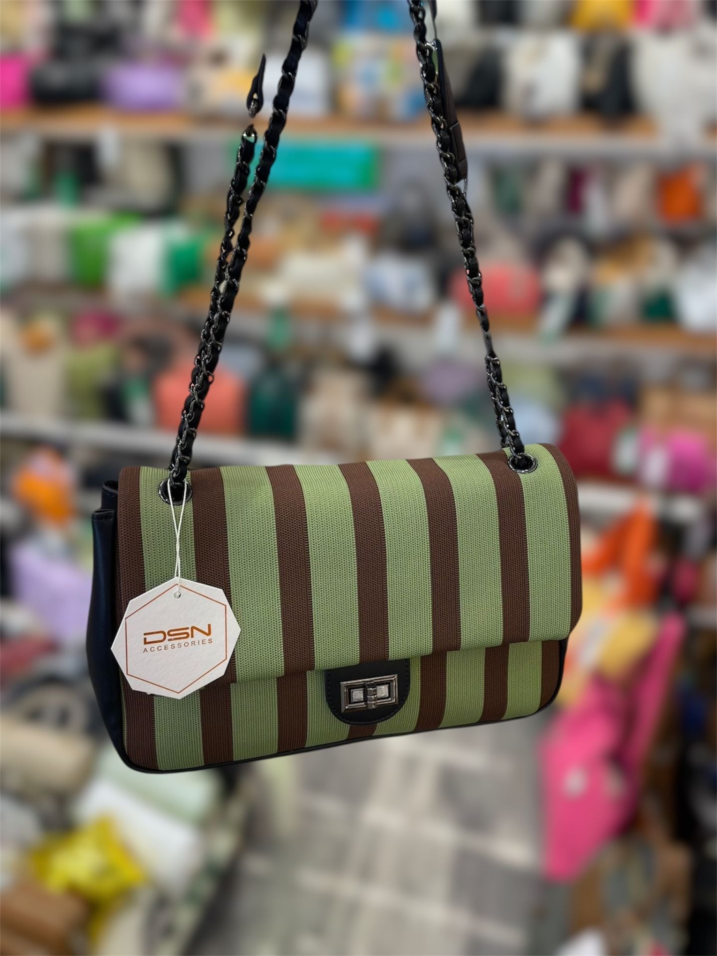 Yeşil Çizgili Kadın Çantası